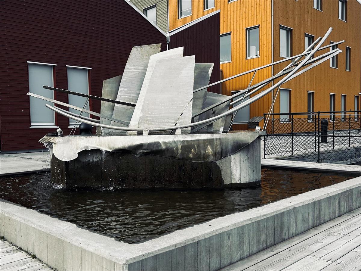 - Lysfontenen som står ved Kragerø kommunes Administrasjonsbygg er laget av Carl Nesjar. Han fikk oppdraget med å utsmykke Televerkets bygning i Løkkebakken i 1978. Da Televerket ble lagt ned ble fontenen gitt i gave til Kragerø sentrumsforening, som igjen ga fontenen videre til Kragerø kommune.